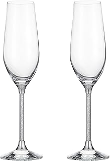 Matashi クリスタルシャンパンフルートグラスセット 8オンス 鉛フリー スパークリングワインウェディンググラス 溝付きクリスタル入りグラス