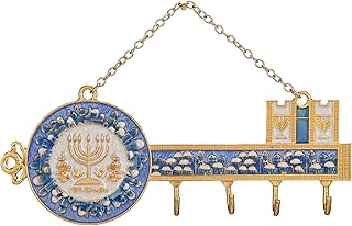 Matashi 手描きブルーエナメル燭台とエルサレムの都市景観デザイン 装飾壁掛けフック 玄関 廊下 寝室 キッチン ホームインテリア 新築祝いのプレゼントに最適