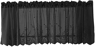ハーフカーテン カフェカーテン ショートカーテン 紫外線カット 刺繍 喫茶店 店舗飾り 全6種 - ブラック1枚バランス130x41cm