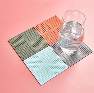コースター シリコン製 北欧スタイルの ジオメトリシリーズの正方形 クラシックなレトロカラー 耐熱 滑り止め コースター・茶托・茶パッド 卓上を清潔に保つ 4枚セット