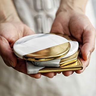 Homehalo コースター おしゃれ 大理石 コースター 北欧風 4枚セット 保護コルク裏面 滑り止めコースター 金メッキ技術 簡約 飲酒 コーヒ 茶パッド 断熱パッド コップ敷き 丸型・正方形・八角形