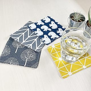 おしゃれ コースター (4枚セット) | ブラックステッチ | 簡単に汚れが拭ける コースター | 水洗いもできて清潔 | 撥水 | インテリア の 敷物 にも