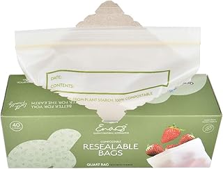 Earth's Natural Alternative 100%コンポスト可能食品保存袋 [クォート40枚パック] 環境に優しい冷凍庫バッグ 再密封可能バッグ 高耐久 生分解性 再利用可能 オフホワイト