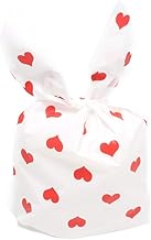 【Fuwari】 ラッピング袋 50枚 底マチ付き レジ袋 ギフト袋 小分け プレゼント お菓子 小物 バレンタイン ホワイトデー 誕生日 イベント ビニール袋 用 (ハート赤)