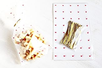 【Fuwari】 ハート 柄 ラッピング袋 包装袋 50枚 ラッピングタイ付き 底マチ付き バレンタイン ホワイトデー お菓子 クッキー 袋 小分け プレゼント 誕生日