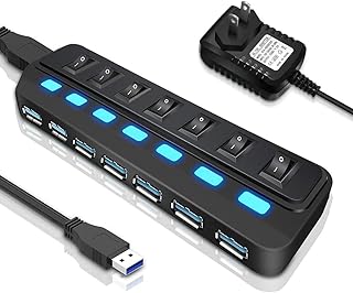 USB3.0ハブ USB3.0 AROMUJOY 7ポートハブ 5Gbps高速 TYPE-C to USB変換アダプタ付き充電可能 独立スイッチ LED表示ランプ USB拡張 0.6メートルケーブル USB3.0高速ハブ アダプタ バスパワー 軽量 コンパクト Windows10/ 8.1 / 8 / 7 / Vista / XP 、Mac/Linux/Chrome OSに対応 (アダプタない 2)
