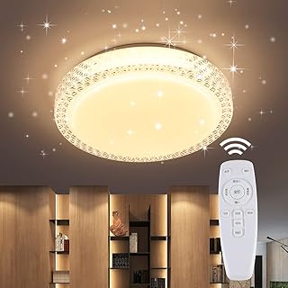 LED シーリングライト 星空効果 24W 無段階調光調色タイプ 4~6畳 常夜灯 モード メモリ機能 照明器具 電球色 昼光色 3000k-6000k 天井 和風 玄関 門灯 廊下 和室 照明 おしゃれ 台所 洗面所 トイレ 引掛式 天井照明 簡単取付 無段階調光調色 シーリングライト (直径27CM 24W 調光調色 リモコン付き)
