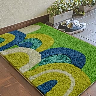 玄関マット クアド 45×75 cm 洗える 滑り止め 日本製 スミノエ製 幾何 デザイン グリーン