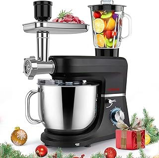 Nurxiovo Stand Mixer 850W 6 Speed Tilt-Head Kitchen Mixer with 6.5QT Mixer with Stainless Steel Bowl, Dough Hook Whisk Beater,Multifunction 3 in 1 Standing Mixers, Meat Blender and Juice Extracter (Parallel Imported Goods) (Black)