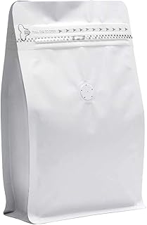 12オンス ホワイトクラフト紙コーヒーバッグ 100枚 スタンドアップコーヒーポーチ 片方向脱気バルブと再利用可能なサイドジッパー (プルタブから開く) フラットボトム - スタンドアップウェル(12オンス、340グラム)