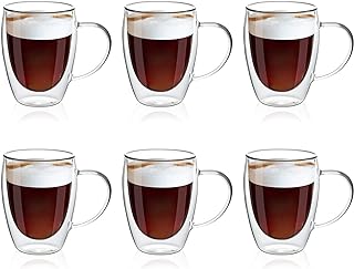SMLIXE 12オンス/6パック コーヒーマグカップ クリアガラス ダブルウォールカップ ハンドル付き コーヒー 紅茶 ラテ カプチーノ用 (12オンス 6)