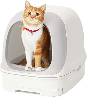 [Amazon限定ブランド] スマイリーBOX 猫用トイレ本体 ニャンとも清潔トイレセット [約1か月分チップ・シート付] ドームタイプ クールホワイト(猫ちゃん想い設計) 猫砂 クールホワイト
